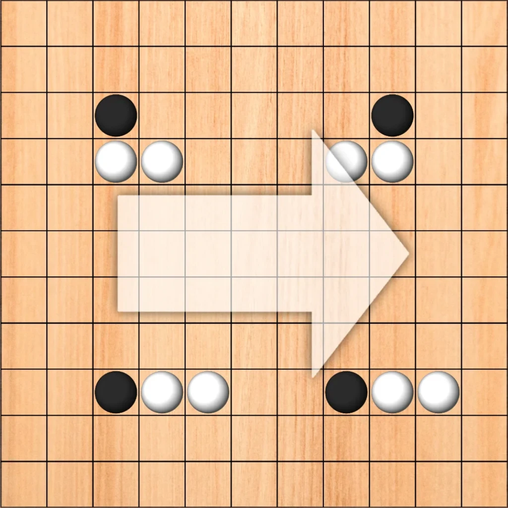 White expands his territory to the right and occupies 4 new fields.