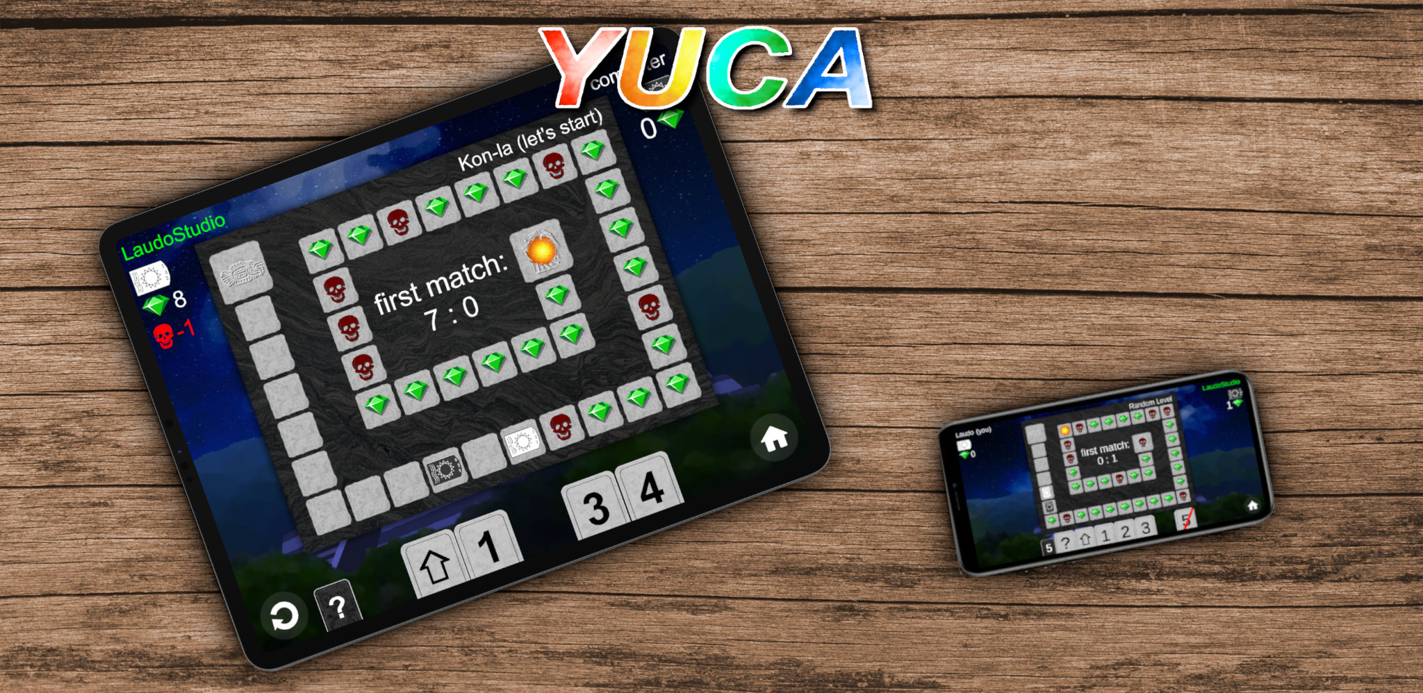 Yuca is a small, fast, exciting board game for one or two players that is available as Yuca board game in the Google Play Store and also in the iOS App Store.